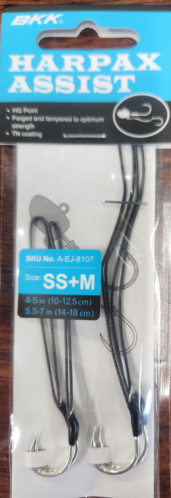 The Harpax Assist is an assist hook developed to be attached to the bottom eyelet of BKK’s Harpax jigheads to convert short bites into solid hookups.